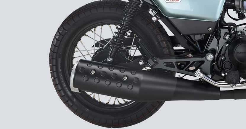 前、后輪胎均加寬20mm,典型復(fù)古龜背型花紋,抓地力更好
